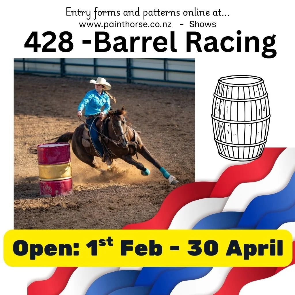Patterns Below 101 Hunter under Saddle Walk/Jog 102 Hunt Seat Equitation Walk/Jog 104 Western Horsemanship Walk/Jog 106 Ranch Rail Pleasure Walk/Jog 105 Western Pleasure Walk/Jog 201 Hunter under Saddle 202 Hunt Seat Equitation 203 Hunter Hack 107/108 Best Paced 103 Showmanship Walk Only 206 RANCH CUTTING 205 RANCH COW WORK 207 RANCH RAIL PLEASURE 208 RANCH RIDING 209 RANCH REINING 210 RANCH TRAIL 204 DRESSAGE Patterns Below 305 Western Horsemanship 427 Leadline - Western Horsemanship Walk/Jog 302 REINING 312 Western Dressage 309/310 Best Mannered 306 Western Pleasure 426 Leadline - Western Pleasure Walk/Jog 428 Barrel Race 311/425 TRAIL RIDDEN/leadline - WALK/JOG 308 INHAND TRAIL 307 LUNGE LINE 303 Showmanship 304 TRAIL 301 FLAG CUTTING Patterns Below 421/422 Liberty Inhand/Ridden 423 Bareback Halter Classes (Best Age & Sex, 419-420) Best Presented (Classes 401,405, 408,413 424 Freestyle (create your own)